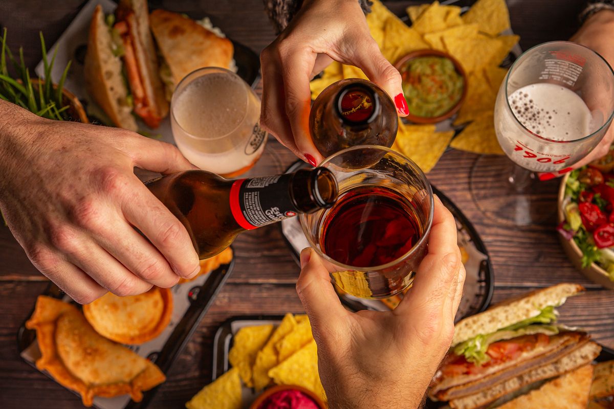 Se puede picar con alguna bebida, limonadas, vino o cervezas. Hay nachos, ensaladas, milanesas, empanadas o sandwich.